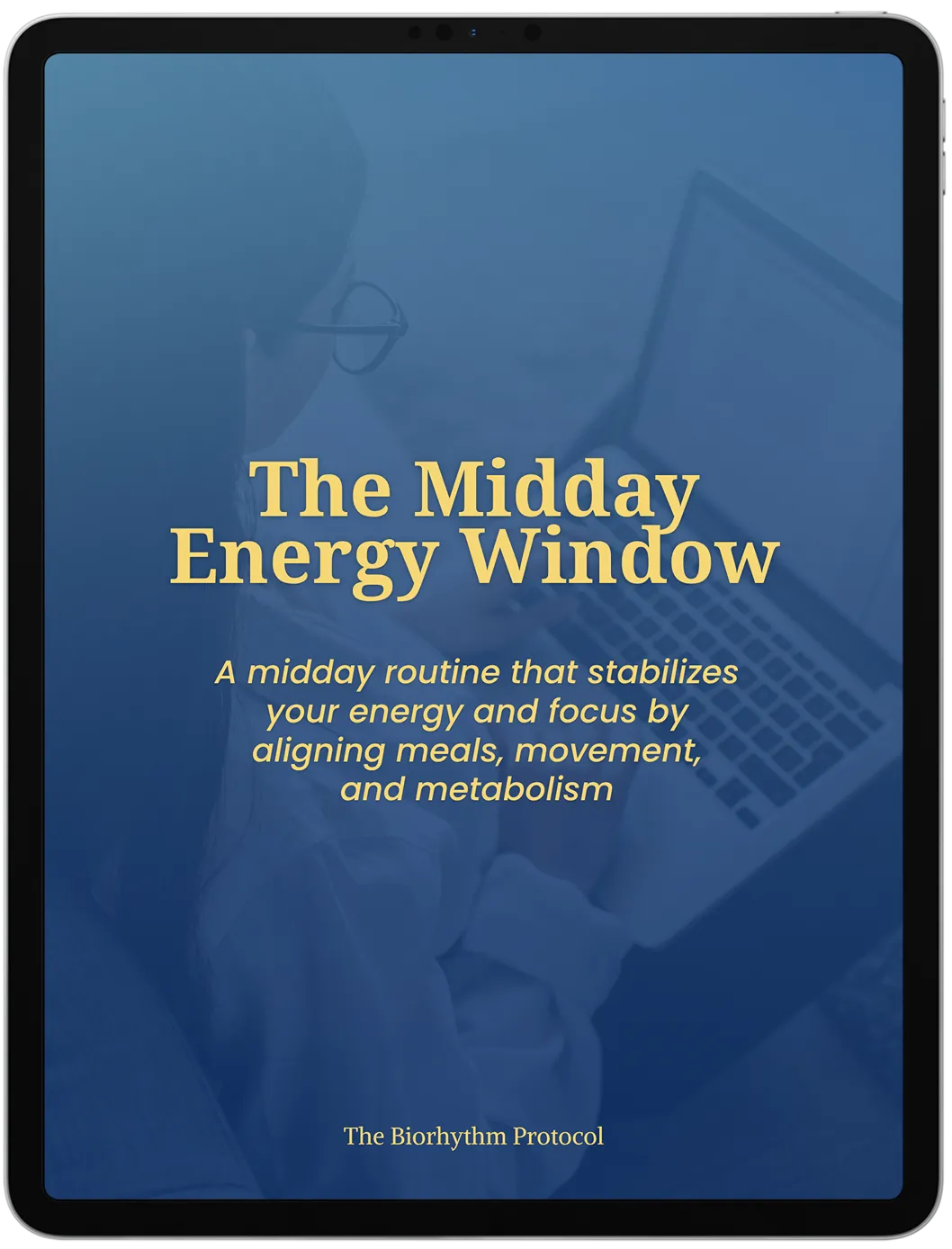 The Midday Energy Window A science-based nourishment and movement rhythm that stabilizes metabolism, eliminates post-lunch crashes, and keeps your brain clear all afternoon (Value: $29)
