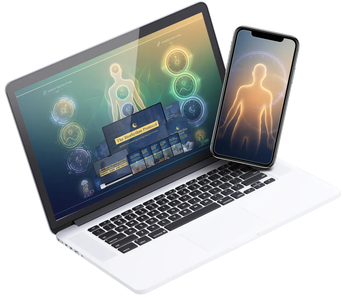 You are getting the complete BioRhythm Protocol™ Blueprint system, available instantly. This includes the 21-Day Rhythm Reset Manual with the TRIAx System, Morning Alignment Protocol, Midday Energy Window, Evening Recalibration Routine, Rhythm Tracker & Reflection Journal, 3-Minute Morning Map, Light Exposure Blueprint, Circadian Nutrition Planner, Neural Brake Audio Pack, 7-Day Flow Challenge, and access to our private support. Everything you need to successfully restore your natural rhythm is included.