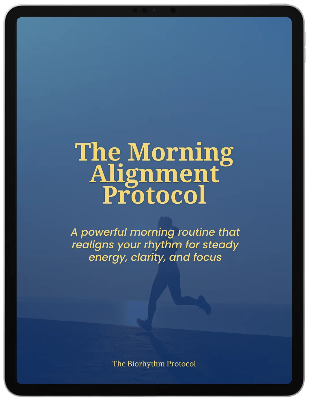 The Morning Alignment Protocol A 5-minute morning ritual that reactivates your Solar Clock through light exposure, breath pacing, and hydration — helping you wake up alert and energized naturally (Value: $29)