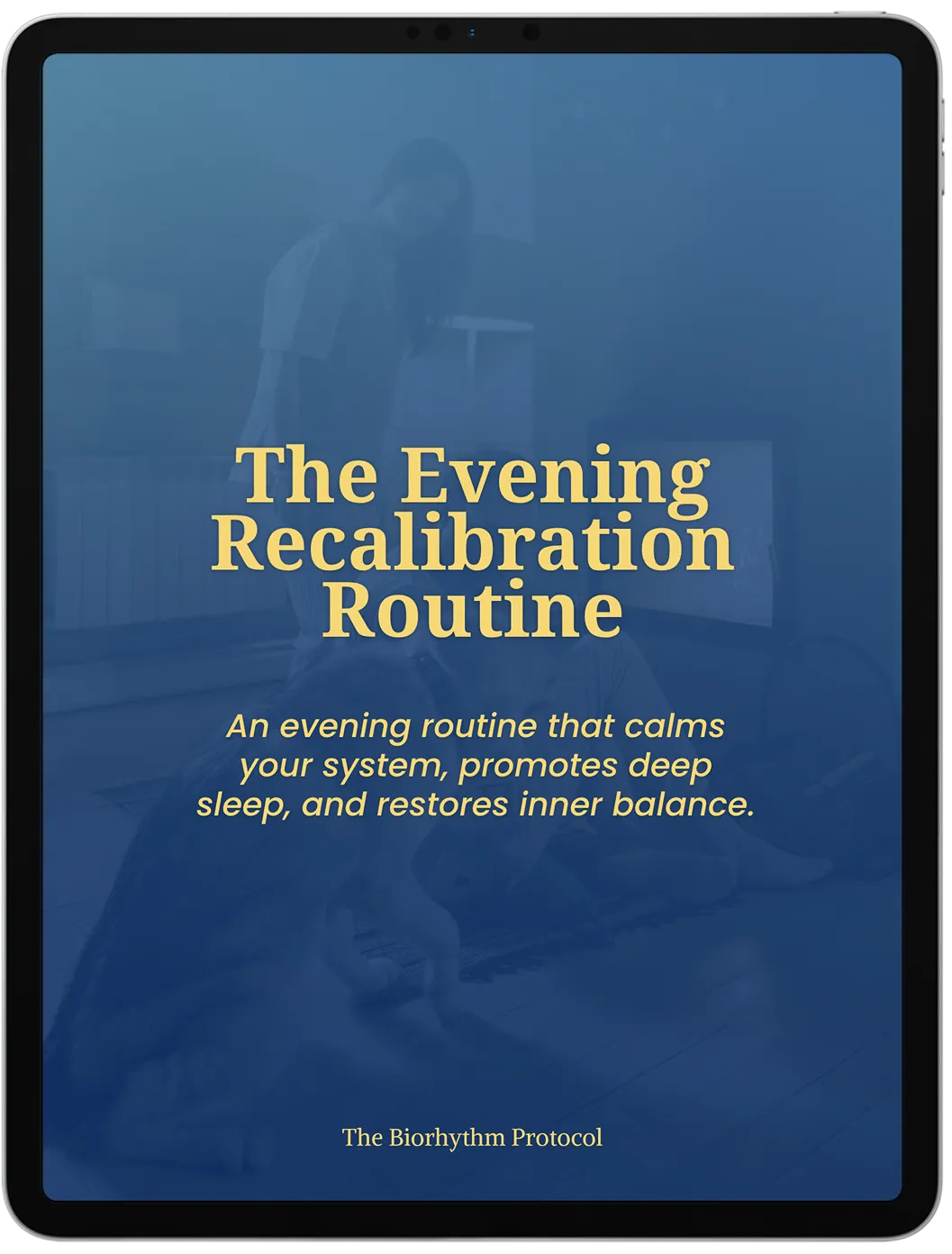 The Evening Recalibration Routine A simple 3-step method that signals your body to power down, releases melatonin naturally, and prepares you for deep, restorative sleep (Value: $39)